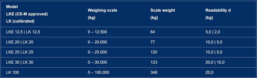 Caracteristici tehnice cantar de carlig seria LK - LKE