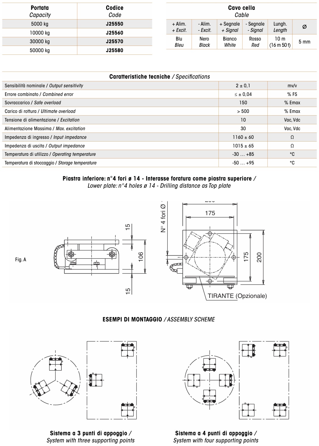 Monturile GPA-C au fost concepute pentru instalare si utilizare facila. Monturile sunt complete, compuse din accesorii mecanice de transmitere a sarcinii, celule de cantarire, sistem de compensare a dilatarii termice si nu necesita bolturi sau alte sisteme de limitare a deplasarii. Monturile GPA-C, celulele de sarcina si cutiile de jonctiuni sunt calibrate cu mase etalon la fabrica Bilanciai din Modena. Clasa de precizie a celulelor din componenta poate avea pana la 10000 de diviziuni conform OIML.