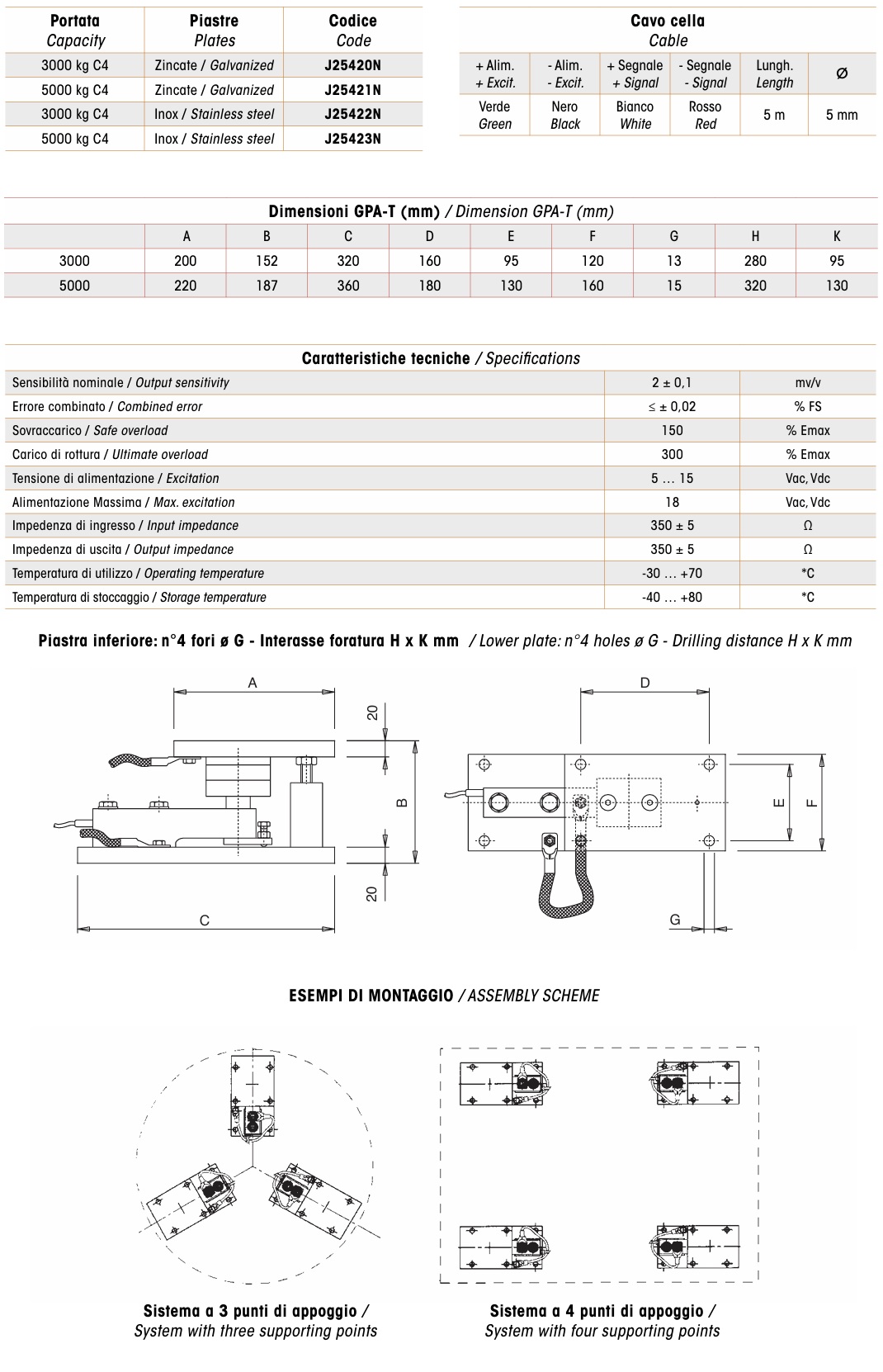 Acest tip de montura dispune de un sistem special de limitare pentru prevenirea supraincarcarii accidentale a celulei de sarcina. Monturile GPA-T sunt complete, compuse din accesorii mecanice de transmitere a sarcinii, celule de cantarire, sistem de compensare a dilatarii termice si nu necesita bolturi sau alte sisteme de limitare a deplasarii. Monturile GPA-T, celulele de sarcina si cutiile de jonctiuni sunt calibrate cu mase etalon la fabrica Bilanciai din Modena.
